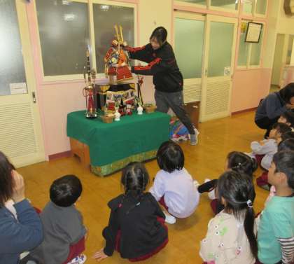五月人形を飾りました。 公開日 2025/04/16 更新日 2025/04/16 お知らせ 幼稚園には、立派な五月人形があります。 まつ組、ばら組みんなで、飾りましたよ。 子どもたちが、元気に育ちますように! いいね(0)
