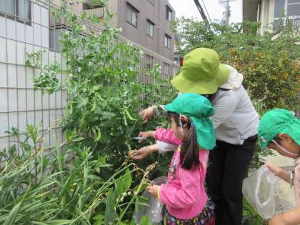 幼稚園では、子どもたちと一緒に、いろいろな野菜を育てています。