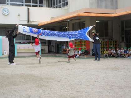 元気いっぱいの子どもたち。 こいぼのりさんに、走ってタッチ!!