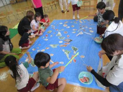 遊びを通して、いろいろな食べ物に興味をもったり、体によい食べ物について考えたりできました。