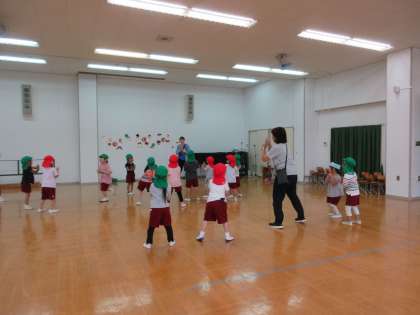 みんなで集まって、『ゆびにんぽう』という忍者の体操もしました。