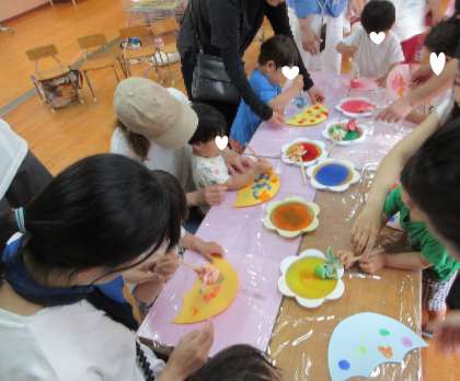 お部屋では、絵の具のタンポで、ペタペタペタペタ…・