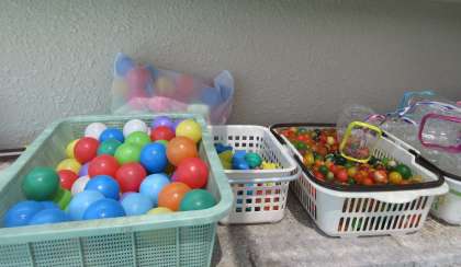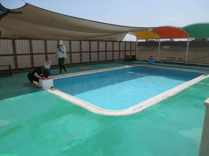 毎回、プールの水を換えて掃除をし、子どもたちが気持ちよく遊べるように準備しています。
