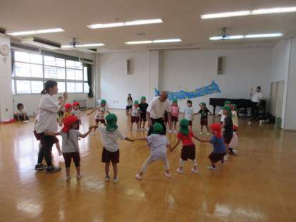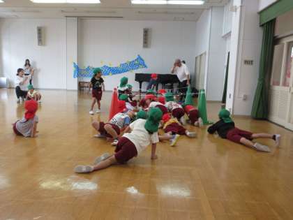楽しく体を動かして遊ぶ中で、人との距離感をとったり、体幹をつかったり、みんなで力を合わせる達成感を感じたりしていました。
