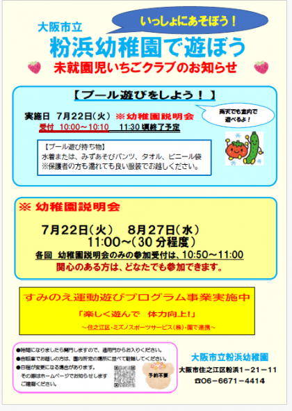 7/22 いちごクラブ プール遊び 幼稚園説明会 案内