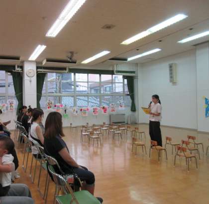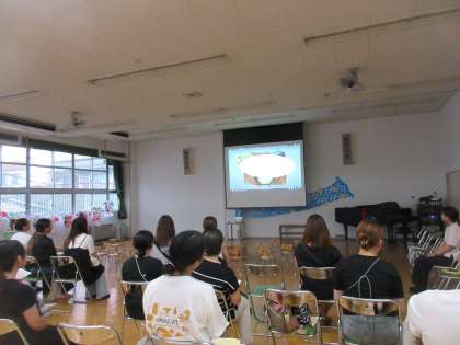 保護者会では、養護教諭からは、「生活リズムをくずさないこと」「熱中症に気を付けること」などの話をしました。