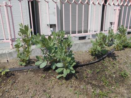 暖かくなり、園庭にある畑のスナップエンドウとソラマメがどんどん大きく成長しています。収穫が楽しみです。