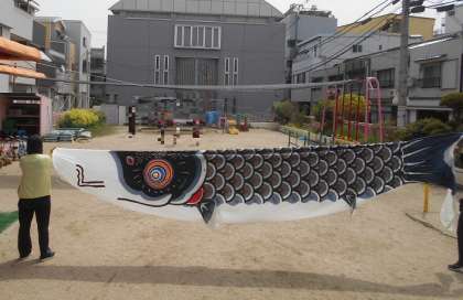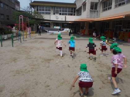 走るのが大好きな子どもたち。こいのぼりに向かって元気にかけっこをして遊んでいます。走っている友達のことも応援し合う姿がありますよ。異年齢で関わりながらいろいろな遊びを楽しんでいきたいと思います。