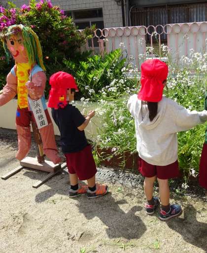 園庭に出ると、大根の花の花壇に行き、なにかを発見したようです。「先生、まめみたい!」「いっぱい集めよう!」と、夢中になって、集めていました。中がどうなっているのか開いてみると…小さい豆が入っていました。「わー!すごいね」「小さくて可愛いね」と、つぶやいていました。