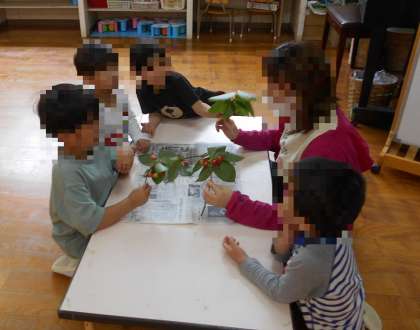子どもたちは、毎日、「赤くなっているかな〜」と、気にかけて様子を見ていました。