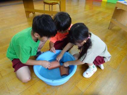 園に帰ってから、まつ組・ばら組で、ザリガニのお家をつくりました。「ひげが長いんだね」「あ!かくれんぼしているよ」など、ザリガニの様子をじっと見つめ、夢中です。これから、丁寧にお世話もしていきたいと思います。