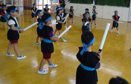 今日は、子ども達が楽しみにしていた「忍者教室」でした。抜き足、さし足、忍び足の修行や、剣、手裏剣の修行など、いろいろな修行を楽しみました。忍者に変身できたのも嬉しかったようです。「また修行したい!」「手裏剣つくりたい!」と、楽しかったことを伝えてくれました。忍者さんに会えて嬉しかったですね!