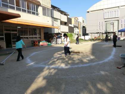 教職員、実習生で力を合わせて、園庭整備をしました。