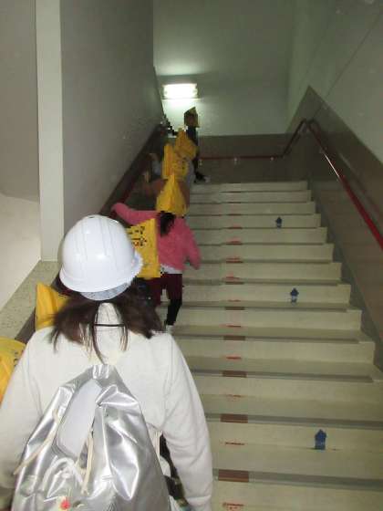 園庭に避難していたら「津波がくる」という想定で、粉浜小学校へ2次避難をしました。