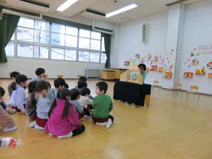『なぜ、おひなさまをかざるの?』の紙芝居を聞いているところです。