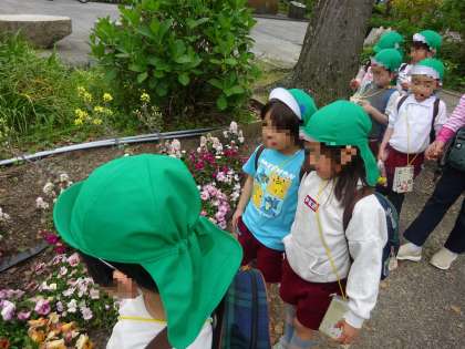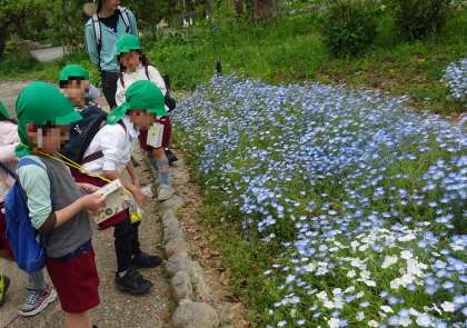 今日は、まつ組が楽しみにしていた住吉公園に行きました。公園にはたくさんのお花が咲いていて、子どもたちも「わー!きれいだね」「たくさんあるね」と、大喜びでした。楽しい遠足となりましたね。