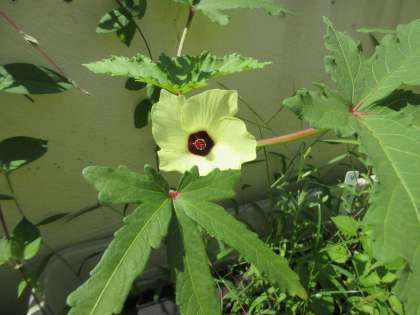 幼稚園から持ち帰り、お家で育てているオクラやミニトマト、ナスビ…。