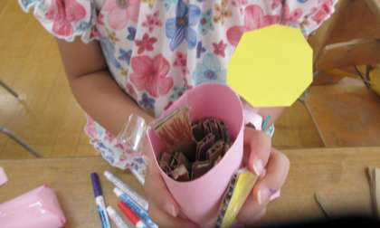 紙やはさみなどを上手に使って、おいしいお菓子をつくっていました。