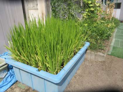 園庭では、住吉大社さんからいただいた稲が、どんどん大きくなってきました。
