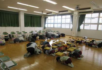 緊急地震速報を聞いて、子どもたちも保護者の方も身を守る行動をとることができました。