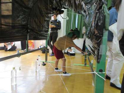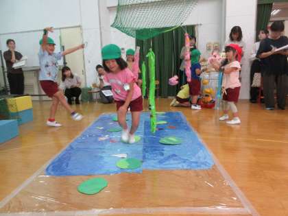 子どもたちが、忍者になって様々に修行しているところを観ていただきました。
