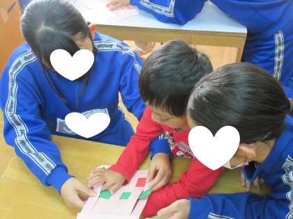 また、チューリップを植えたり、一緒に制作(組み紙、まつぼっくりの飾り)をしたり、仲良し遊びや玉入れをしたりしました。