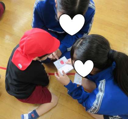 幼稚園の子どもたちにとって、お兄さん・お姉さんとふれあい、優しくしてもらって憧れの気持ちがいっぱい膨らんだようでした。