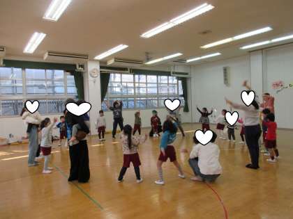 5歳児が中央公会堂で歌った歌を聴いてもらったり、一緒に手遊びもしたりしました。