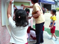 運動会の時にした「ちきゅうのこども」を踊ったり、「すみのえ運動遊びプログラム事業」でしていたボール遊びを一緒にしたりして、過ごしました。