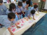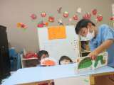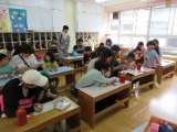 ばら組は、食後の歯磨きを養護教諭の先生に教えてもらっています。 よく見て、磨いて...
