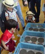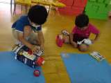 おうちの人と一緒に、手形をつくりました。粘土を伸ばしたり、手形をとったり、飾り...