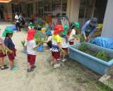 研究保育として、幼稚園の教諭と子どもたちが、忍者になって体を動かして遊んでいると...