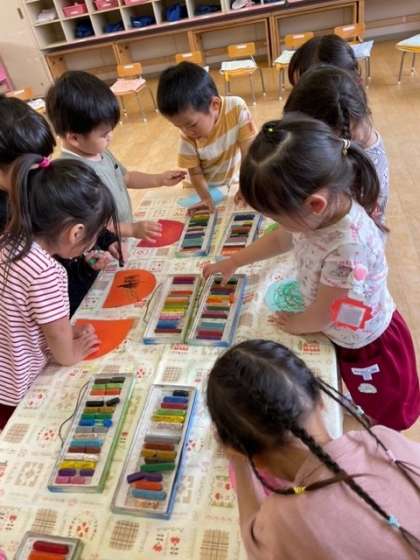 「いっぱいした〜」といろいろな色を使うのが楽しい様子でした。