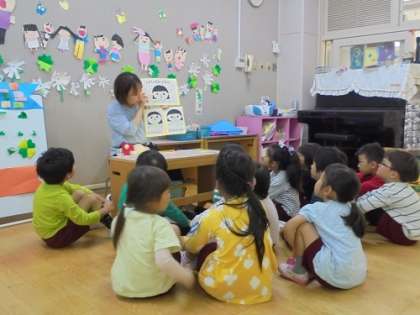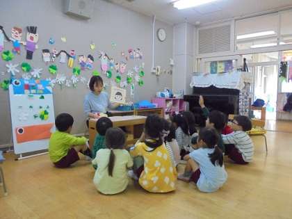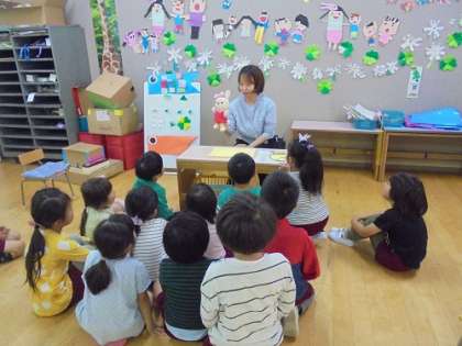 あお組に保健指導を行いました。けがをした時に先生やおうちの人に言わないでいるとどうなるのかを話し、けがをした時に大人に言うことの大切さを確認しました。また、「けがのてあてクイズ」をしました。鼻血が出た時や頭をぶつけた時、転んですりむいだ時、友達がけがをした時にどうすればよいのかを2つの選択肢から選びました。子どもたちは、けがをした時に、先生やおうちの人がどのように手当てをしてくれるのかをよく見ているようで、全問正解していました。