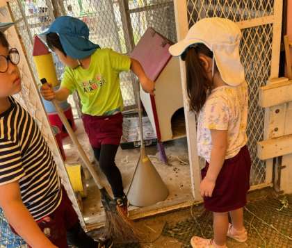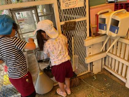 「ウサギさん、うんちいっぱいしてるわ」「掃除してあげよう」とウサギ当番をみんなで頑張りました。