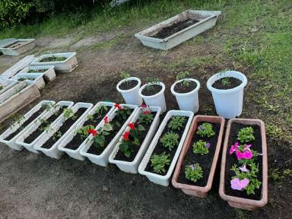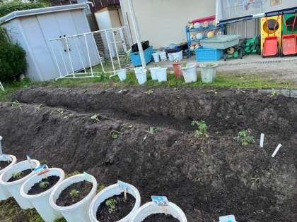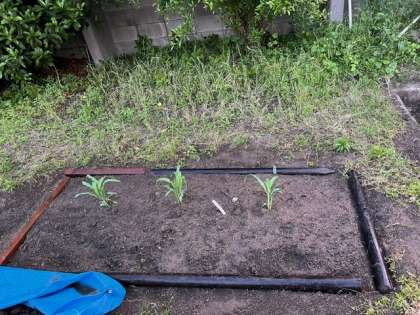 畑にあお組がサツマイモを植えました。大きく育つといいですね。トウモロコシの畑もできました。お花も植えて、幼稚園が明るくなっていくと嬉しいです。水やりもしっかりして、育てていきましょう。