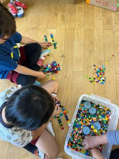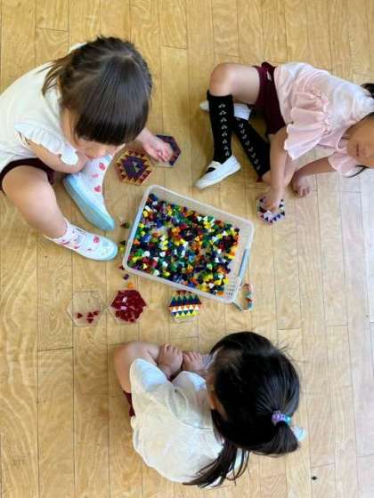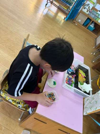 朝の時間に、自分の好きなパズルやアイロンビーズ、LaQなどに黙々と取り組んでいるあお組です。