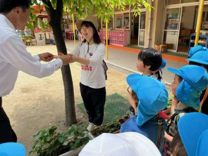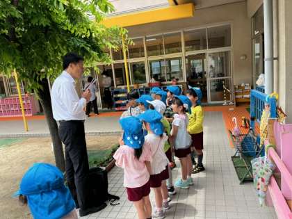 南海電車、住吉東駅の駅長さんが、高野線「ごくらくばし」の駅に飾るので、「七夕の短冊に願い事を書いてほしい」と言っていただき、短冊を届けていただきました。あお組は「大きくなったら何になろうかな」と考えていました。