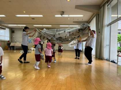 マントにしたり、ボールとバットにしたり、投げたり蹴ったり、ちぎって雨のように降らせたり、いろいろな遊び方がありました。
