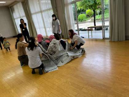 たくさん繋ぎ合わせた新聞のトンネルをくぐったり、みんなでくるまったりしました。