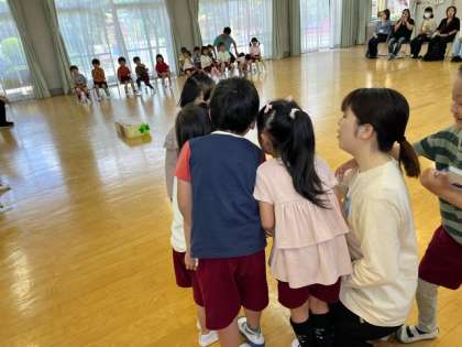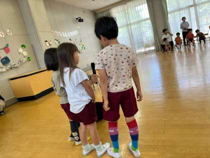 あお組が友達と一緒に司会をしました。昨年度はみていただけだったあお組。大きな声で司会をしていました。