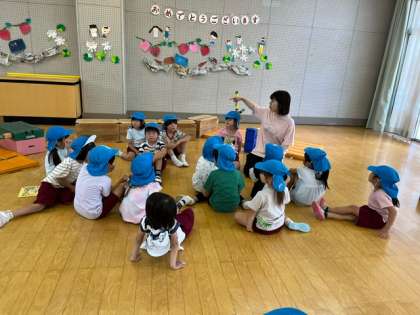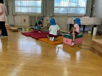 サーキットのコース作りをしているあお組は、自分たちの楽しさだけでなく、もも組のことも考えながら、いろいろなコースを考えています。