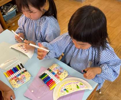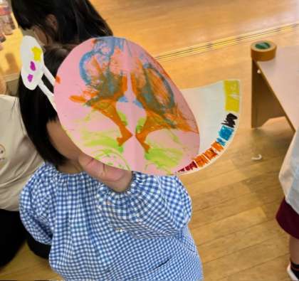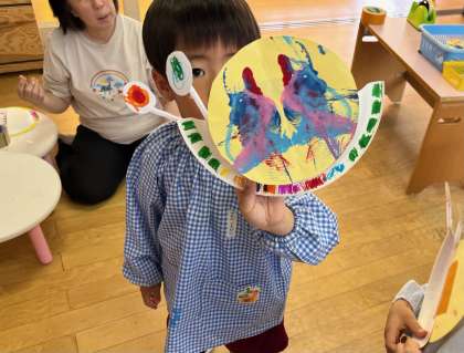 出てくるかたu糸引き絵を頑張ってした後に、素敵なカタツムリを作りました。面白い模様のカタツムリができました。