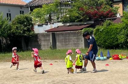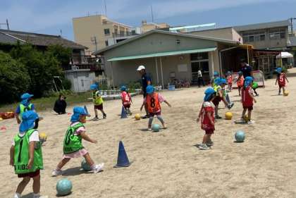とても暑い日でしたが、子どもたちは水分補給を何度もしながら、サッカー遊びを楽しみました。