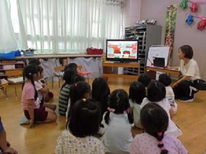 最後に、今日の話の感想を子どもたちに聞くと、「楽しかった」「これからふわふわことばを使ってみる!」とふわふわことばで返してくれました。
