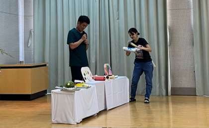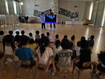 お供え物を見たり、「たなばたのおはなし」をブラックライトを使ったパネルシアターで見たりしました。