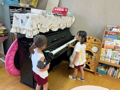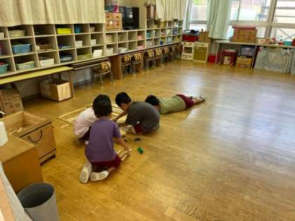 8月も暑い日が続いていますが、預かり保育に来ている子どもたちは、午前中はプールで水遊び、その後美味しい弁当を食べ、保育室で好きな遊びを楽しんでいます。