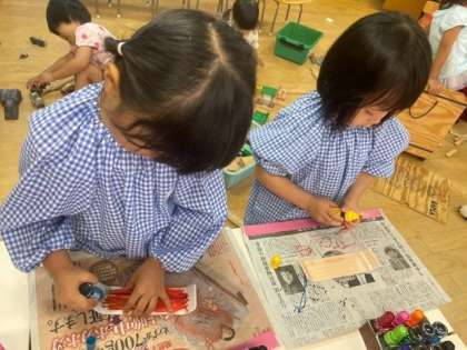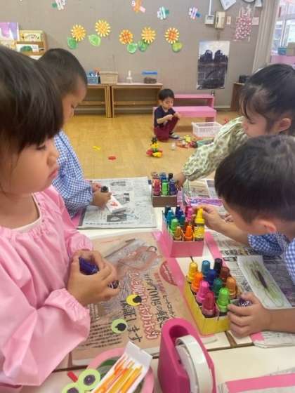 「なにいろにしようかな?と色を選んだり、「ぐるぐるの模様にした」とかいたりすることを楽しんでいました。