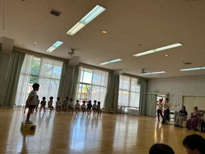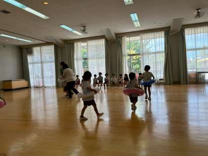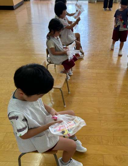 8月生まれの子どもたちの誕生会がありました。夏休みにひとつ大きくなって、嬉しい気持ちがいっぱいの子どもたちはにこにこと登園してきました。浮き輪をつけて入場したり、自己紹介を頑張って言ったり、お家の人からお祝いメッセージを言ってもらったりして、楽しそうな子どもたちでした。