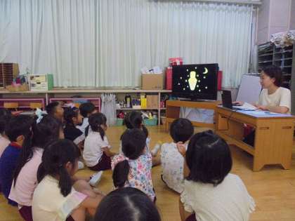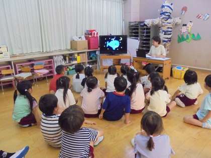 あお組に「睡眠」に関する保健指導をしました。夜は9時までに寝ると体が大きくなるプレゼントをもらえるということ、遅く寝てしまうと体が大きくなるプレゼントが少なくなってしまうことを知らせました。また、朝は9時までに幼稚園に来ると、余裕をもって朝の準備ができたり、早く準備が終わったらいっぱい遊べたりするなど、良いことがたくさんあることを知らせました。子どもたちは、「今日は8時に寝ようかな」「明日は早く来る!」とやる気満々な様子でした。